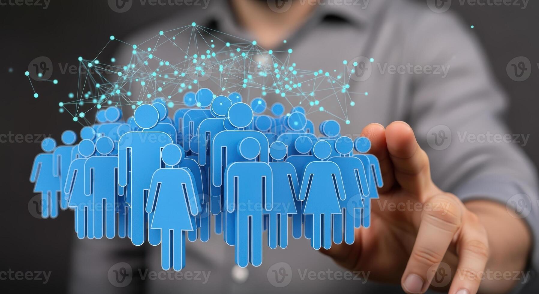 Abstract Social Network Visualization Hand Interacting with a Digital Crowd Concept with Connection Dots Pro Photo