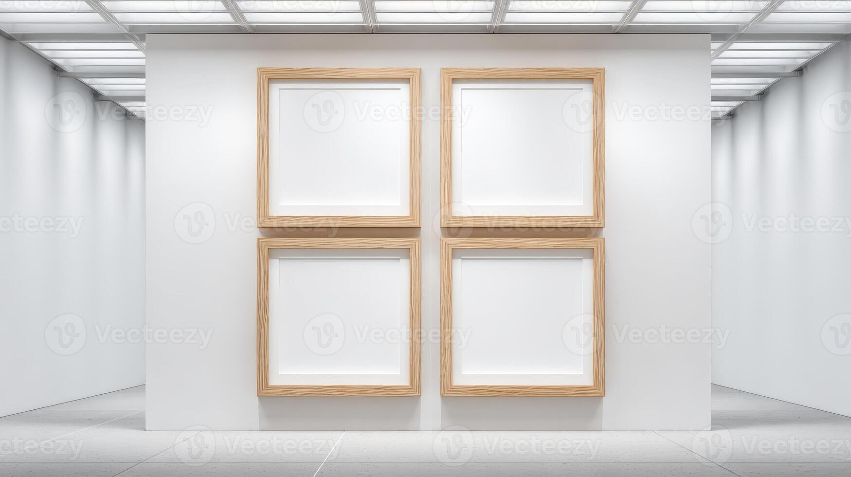 Four Empty Frames in Gallery, Ideal for Art Exhibition Mockups and Displaying Artwork in Modern Style Pro Photo
