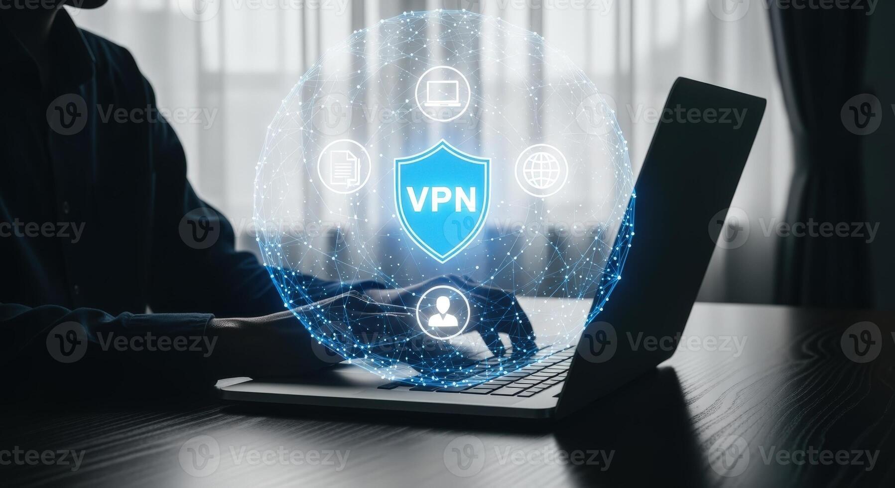 VPN Connection on Laptop Secure Network Access and Encrypted Data Transfer with Cybersecurity Technology Pro Photo