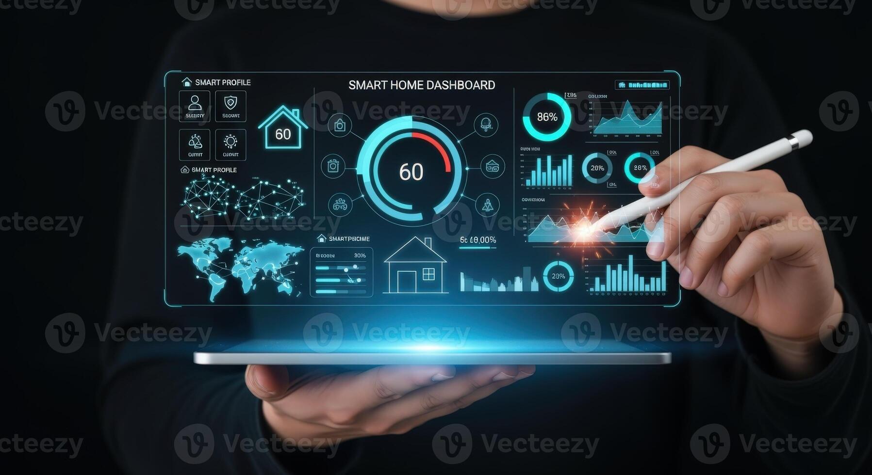 Smart Home Technology Dashboard on Tablet Monitoring and Control for Efficient Living Pro Photo