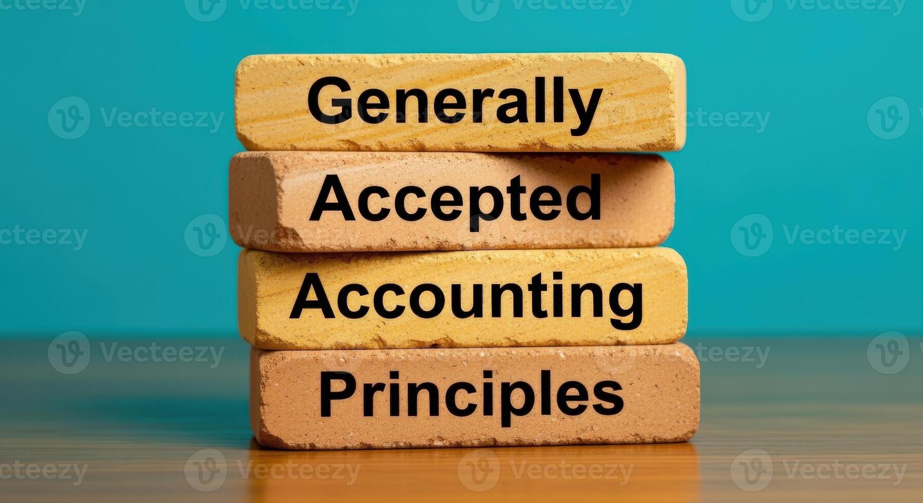 GAAP Conceptual Framework Generally Accepted Accounting Principles on Stacked Wooden Blocks Against Blue Background Pro Photo