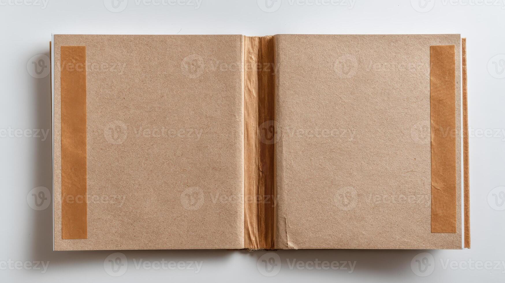 Open Book with Blank Brown Paper Pages, Ready for Text or Graphics, Neutral Background Pro Photo