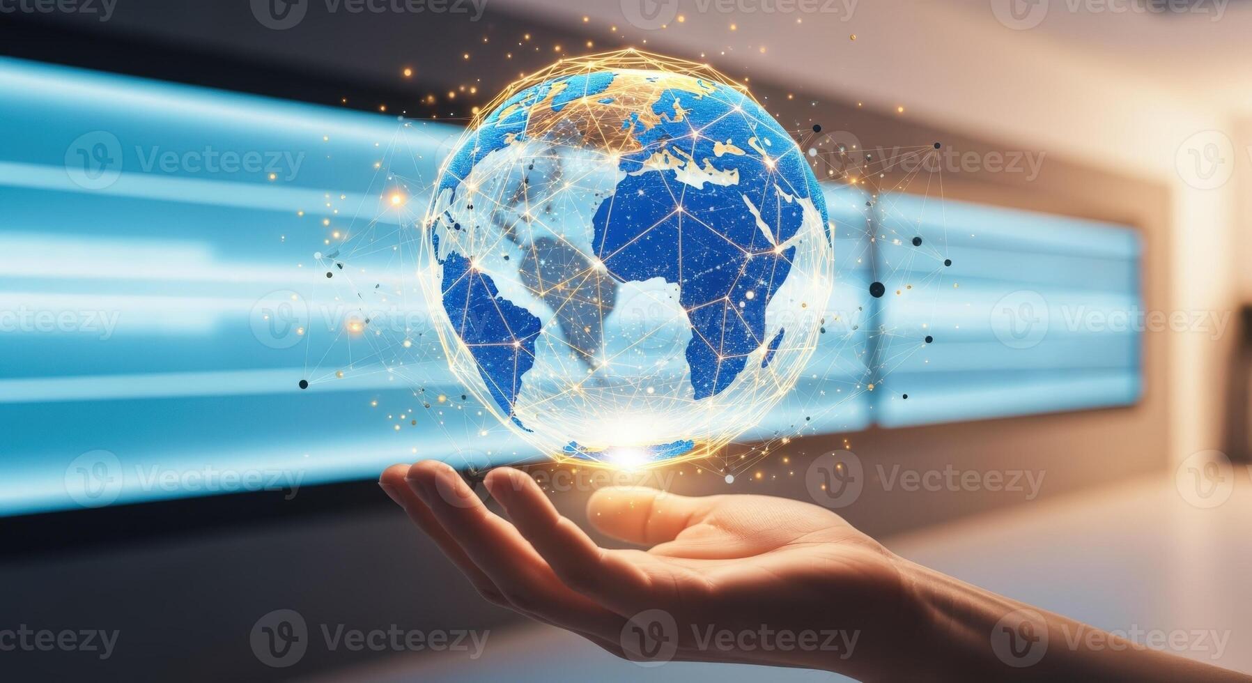 Digital Globe in Hand Technology, Connectivity, and Global Network Conceptual Image for Business and Innovation Pro Photo