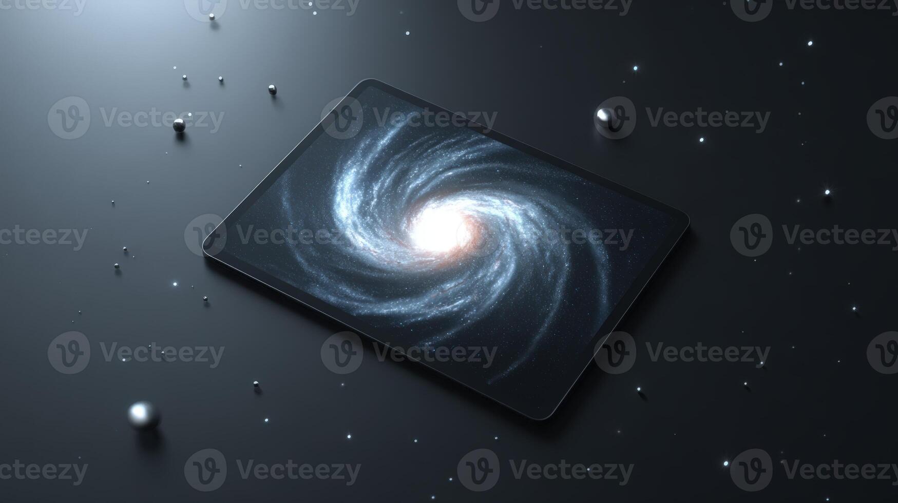 Galaxy Display on Tablet Device with Dotted Reflections for Modern Tech Concept Pro Photo
