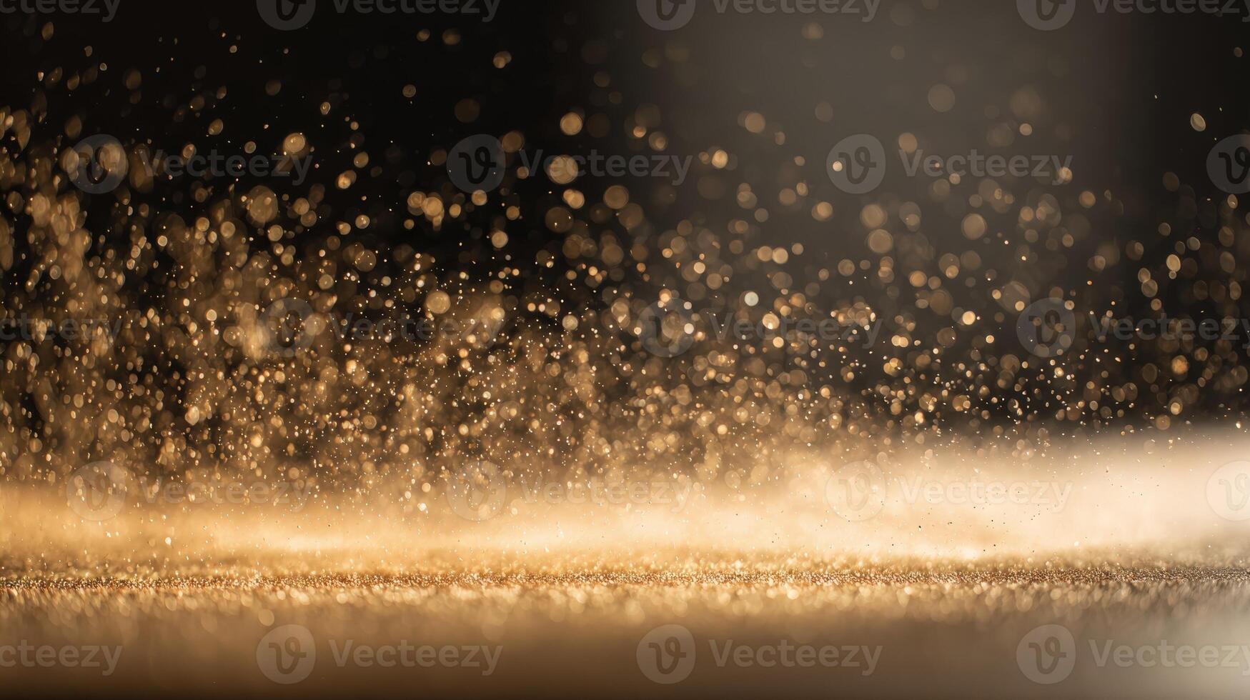 Abstract Gold Dust Explosion Sparkling Particles Floating in the Air on Dark Background for Magical Atmosphere Pro Photo