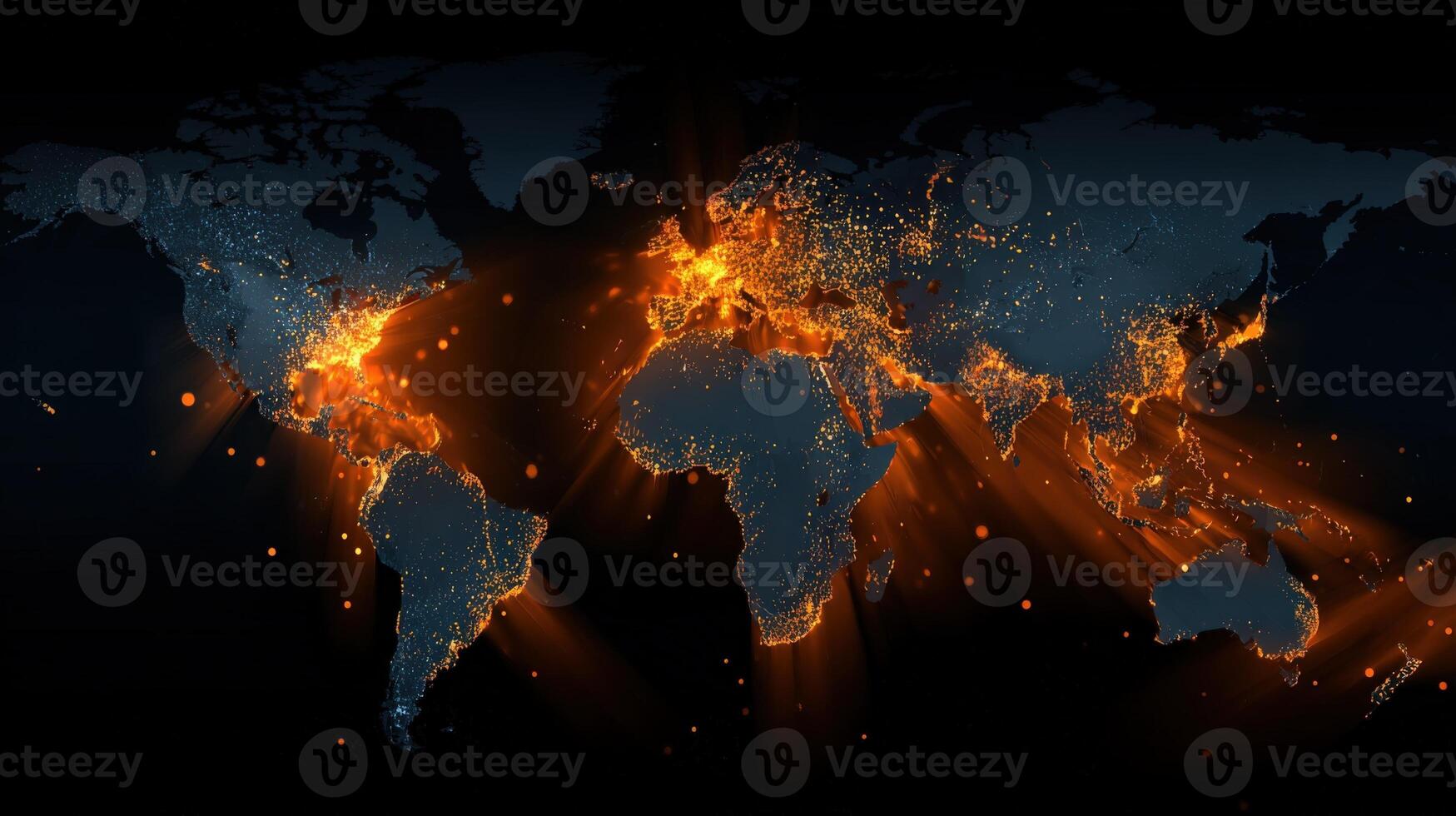 Global Connectivity Map with Illuminated City Lights Displaying Network and Data Transfer Across Continents Pro Photo