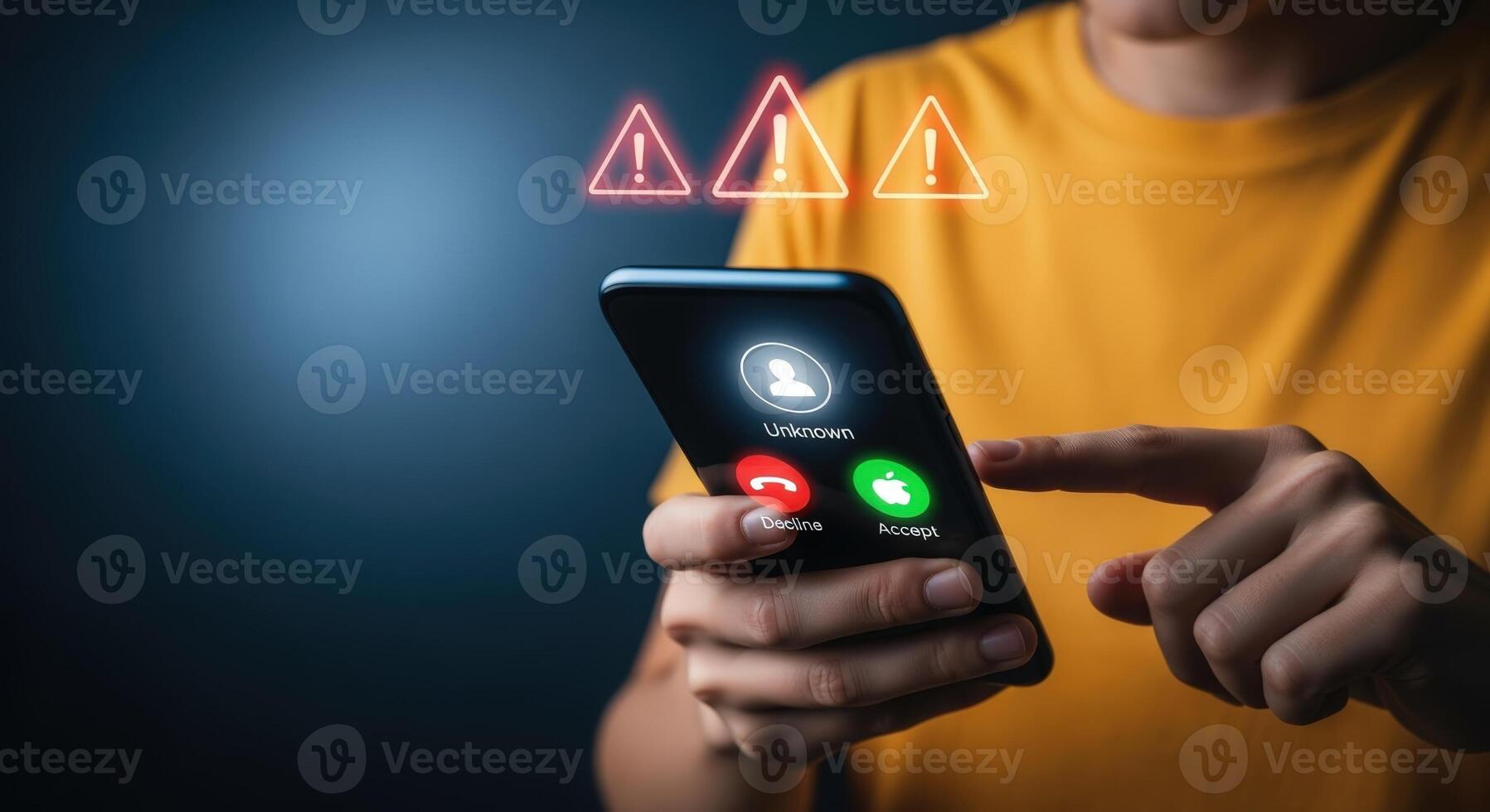 Person Holding Smartphone with Alert Notifications, Warning Sign, Cybersecurity Threat and Network Security Concept Pro Photo
