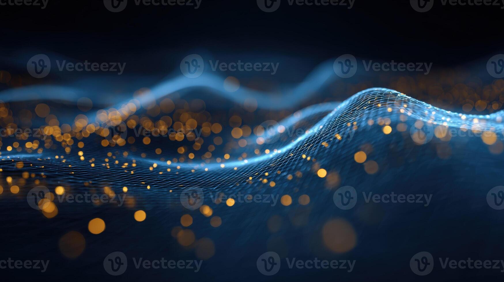 Abstract Waveform Data Visualization with Dotted Pattern in Blue and Gold, Illustrative Background Pro Photo
