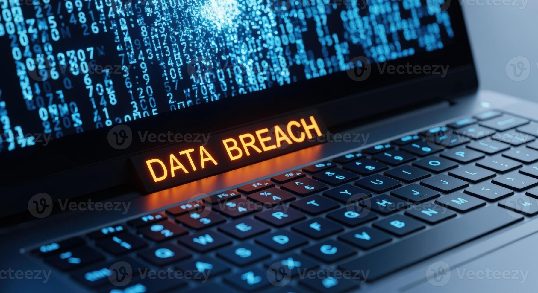 Data Breach on Laptop Screen with Binary Code Display, Illustrating Cybersecurity Threats and Information Leakage Pro Photo