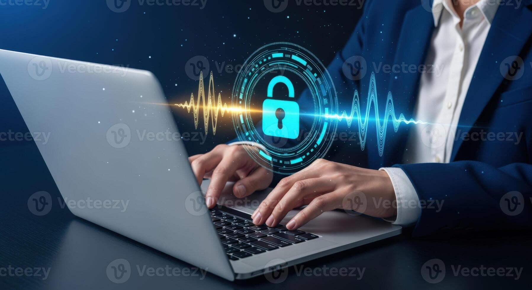 Cybersecurity Professional Securing Data with Laptop Data Protection, Encryption, and Digital Safety Measures Concept Pro Photo