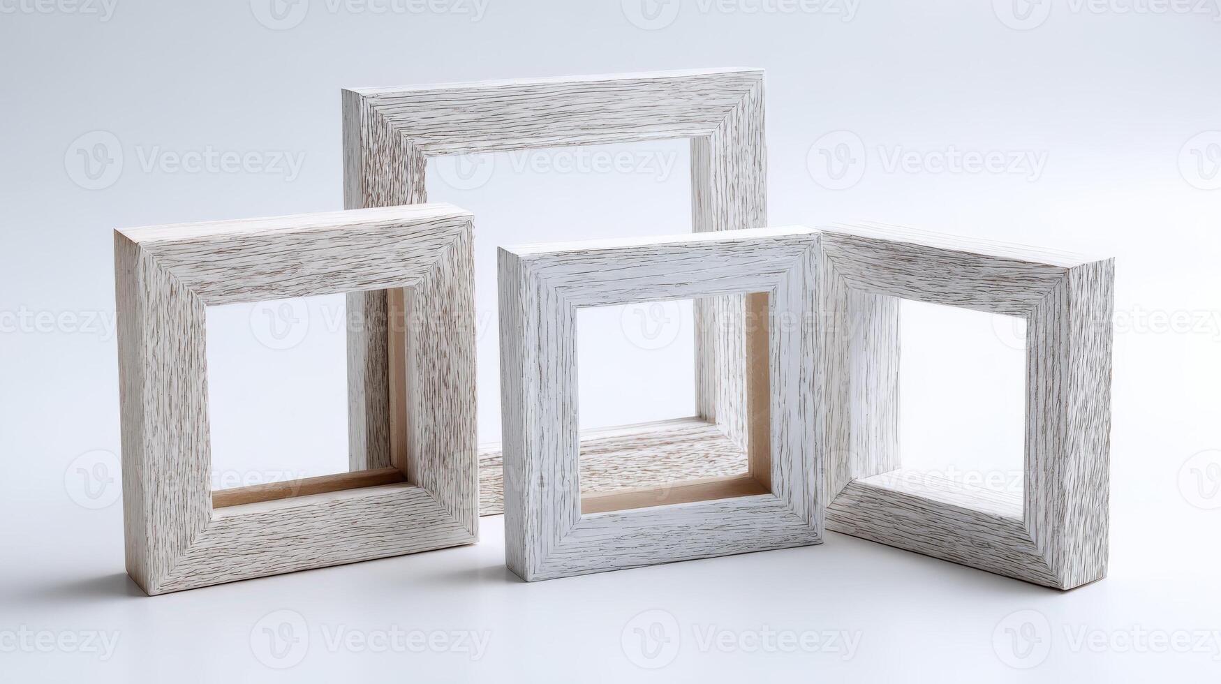 Four Whitewashed Picture Frames Arranged on a White Background, Ideal for Mockups and Displays Pro Photo