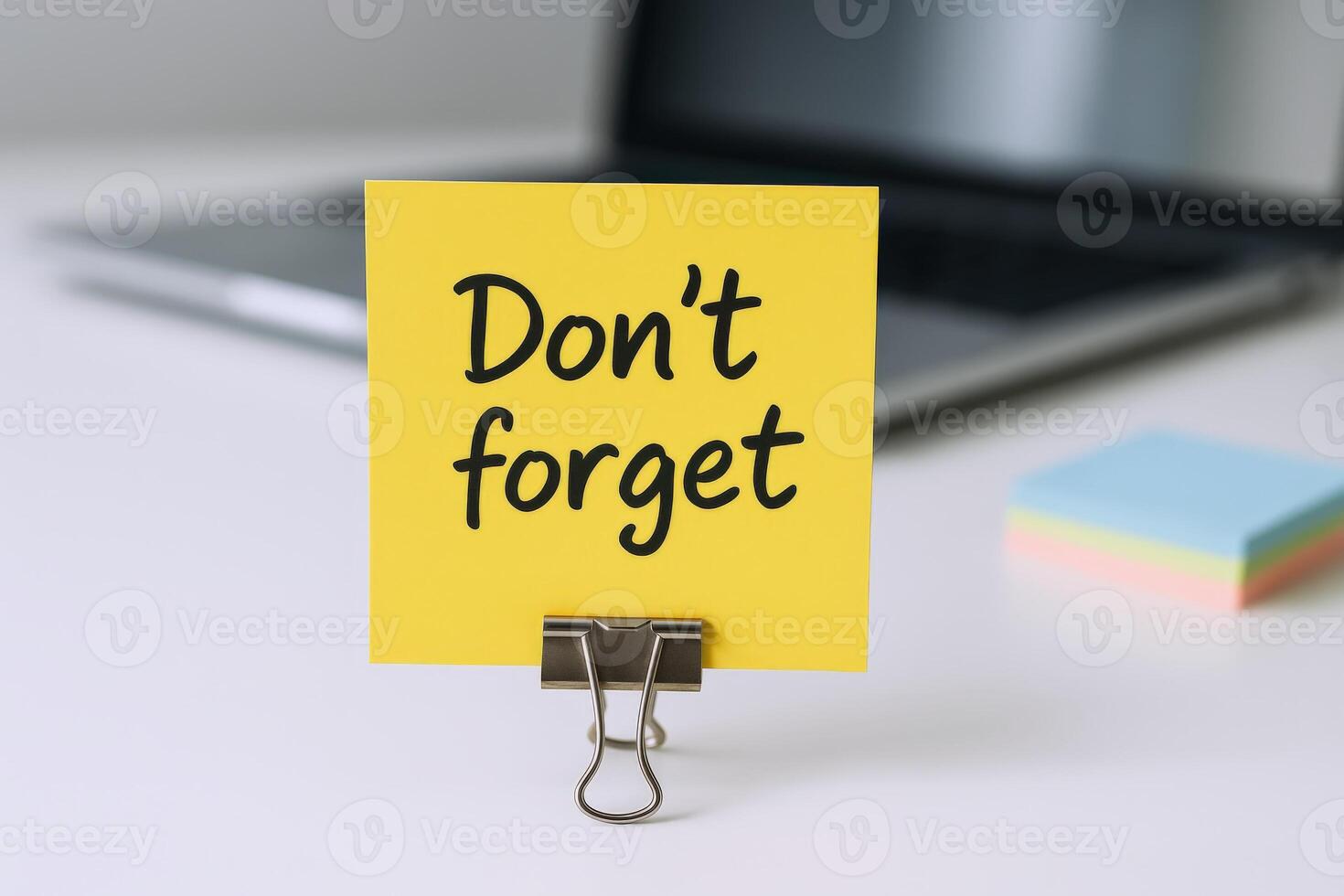 Reminder Note on Desk with Laptop in Background Urging Proactive Memory Pro Photo