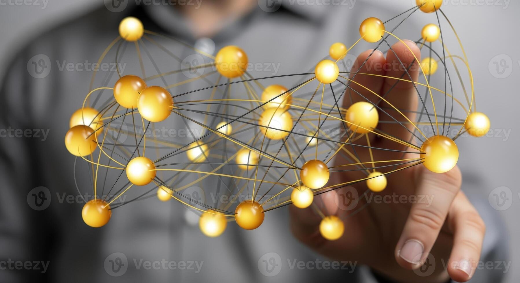 Network Connection Concept with Spheres and Lines Displayed Over Hand, Symbolizing Global Communication and Interconnectedness Pro Photo