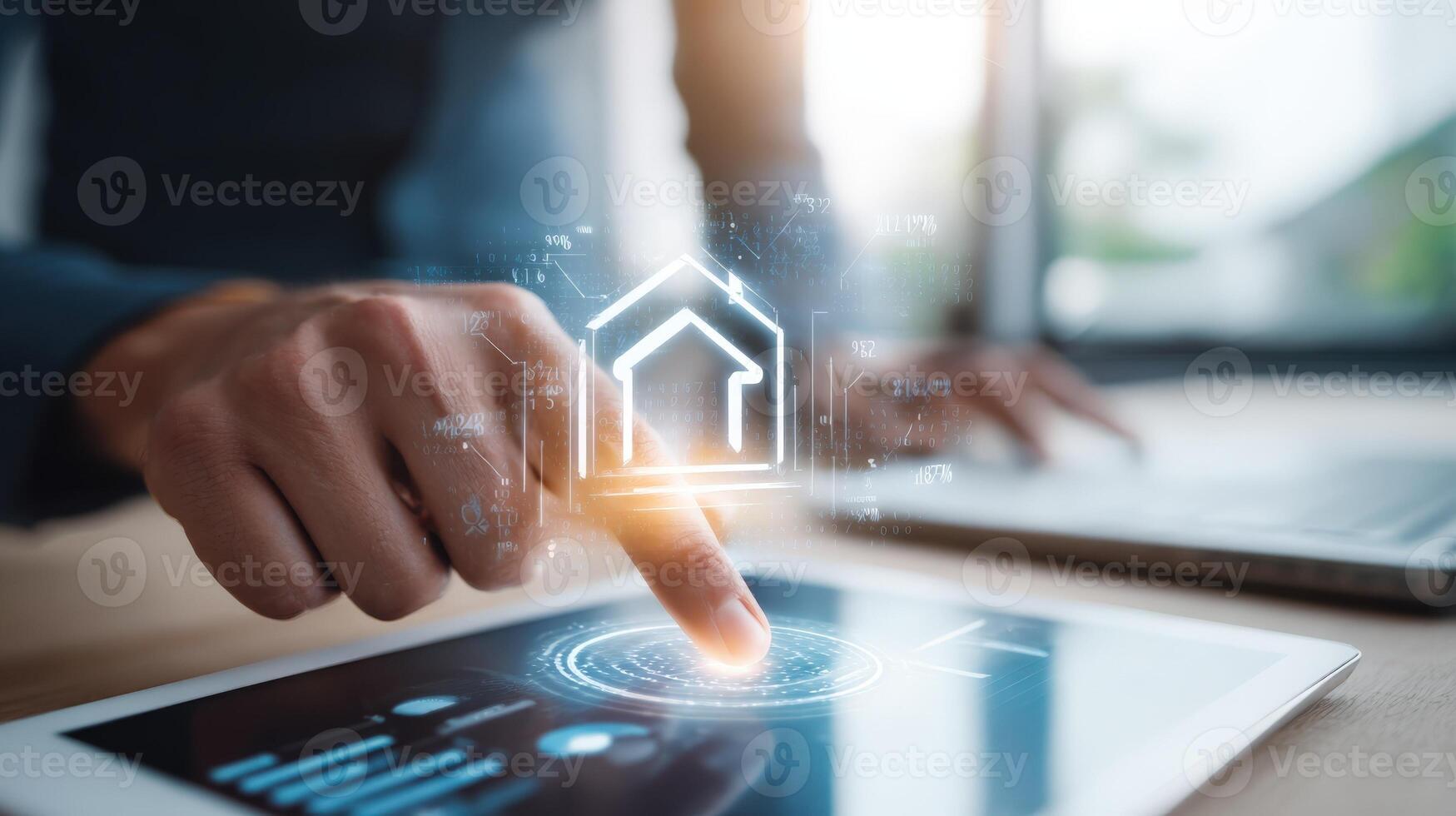 Smart Home Technology Person Using Tablet for Automation, Security and Monitoring Pro Photo
