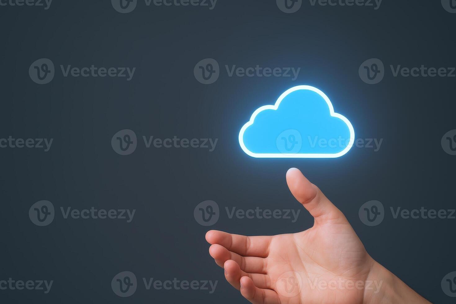 Hand Reaching for a Glowing Cloud Cloud Computing Concept, Digital Transformation and Technology Pro Photo