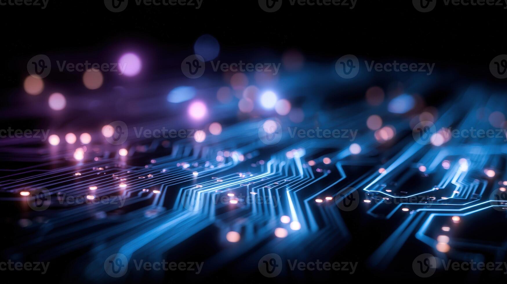 Abstract Circuit Board Design with Glowing Lights, Technology and Innovation, Hi-Tech Concept Pro Photo
