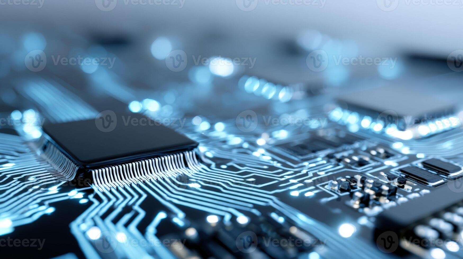 Close-up of a Modern Computer Motherboard Illustrating High Tech Circuitry and Data Flow, Ideal for Technology Concepts Pro Photo