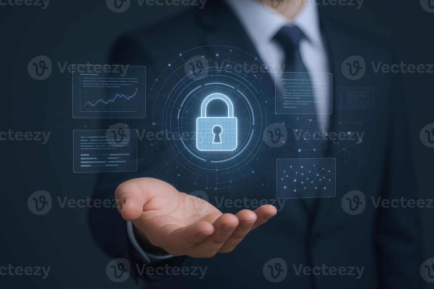 Cybersecurity Professional Protecting Data with Digital Lock Graphic Business Executive Ensuring Information Security and Privacy Pro Photo
