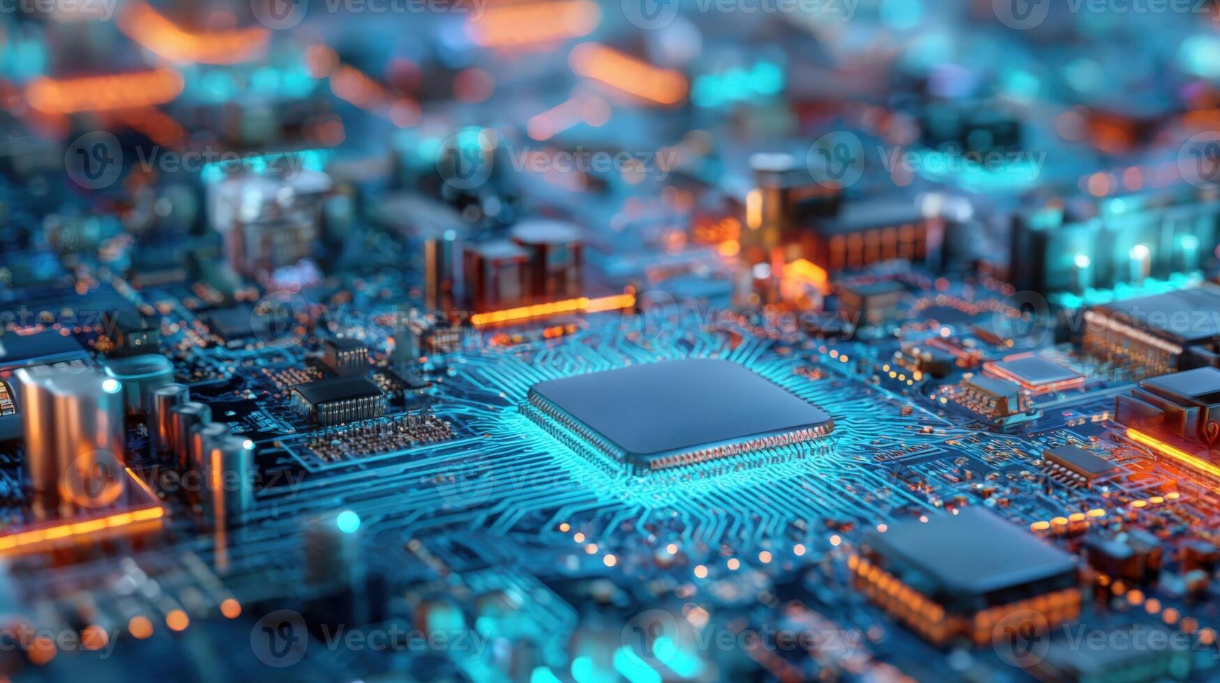 Close-up of a Computer Motherboard Illustrating Technology, Data Processing, and Futuristic Computing with Glowing Elements Pro Photo