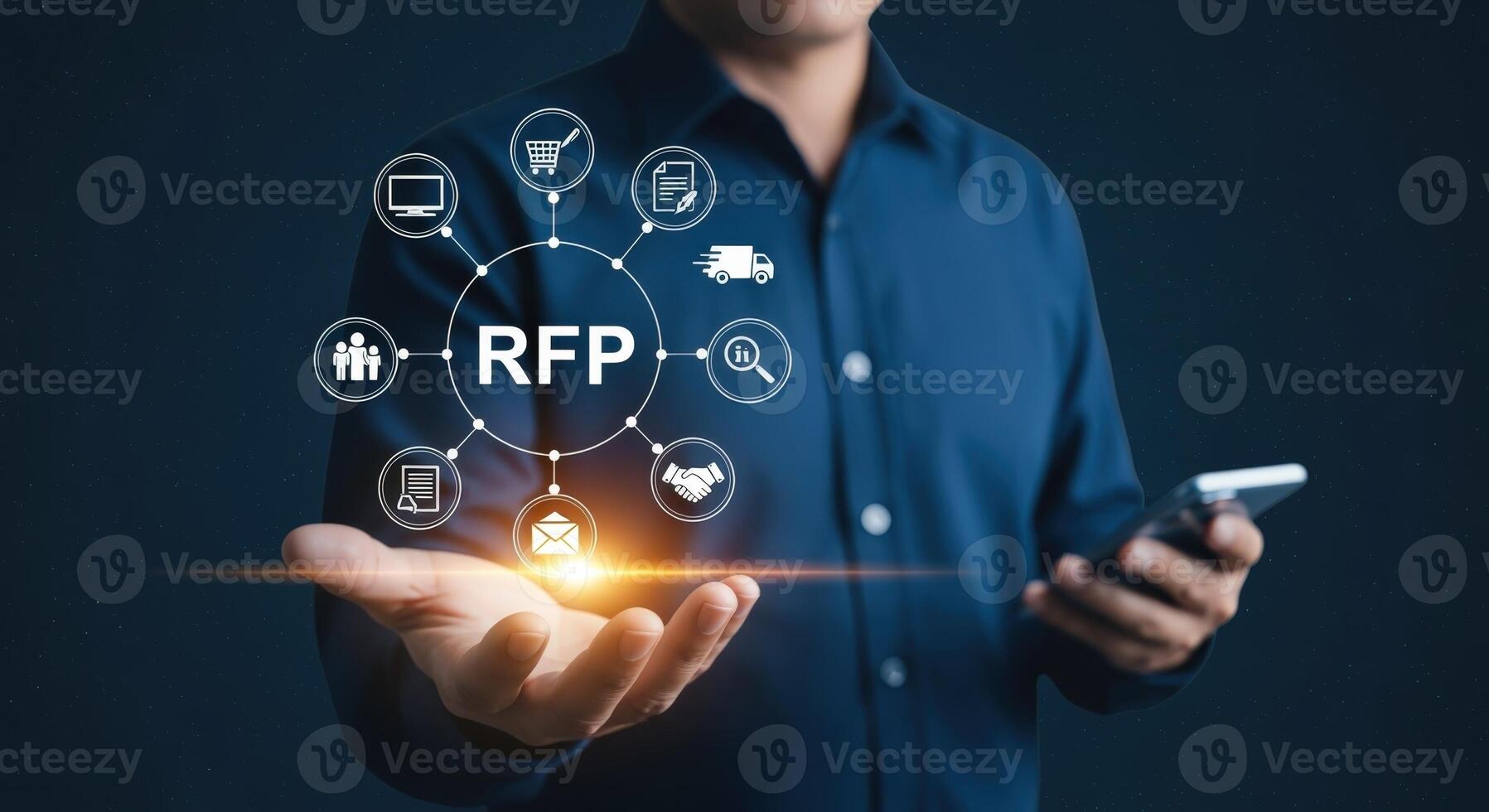 Request for proposal process with businessman, strategy to optimize selection of best vendor and procurement Pro Photo
