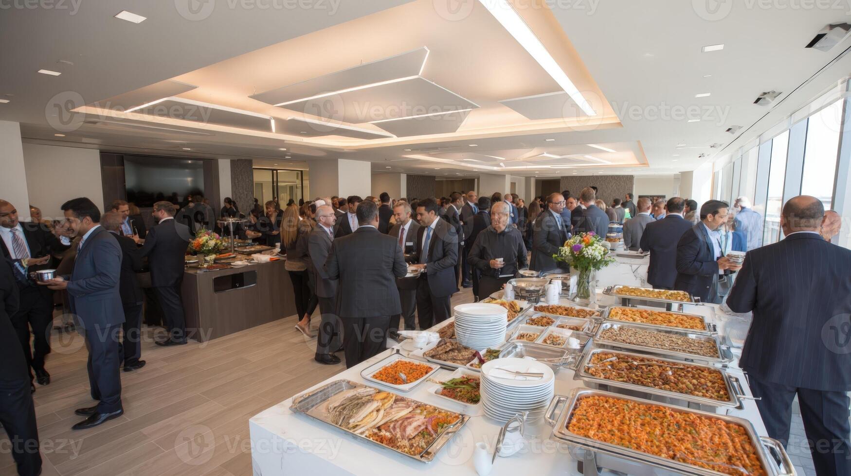 Corporate Networking Event with Buffet Style Catering in a Modern Office Building Pro Photo
