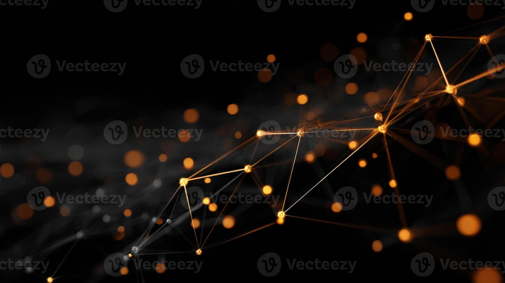 Abstract Network Connection Golden Nodes and Lines on Dark Background, Representing Data Flow and Connectivity Pro Photo