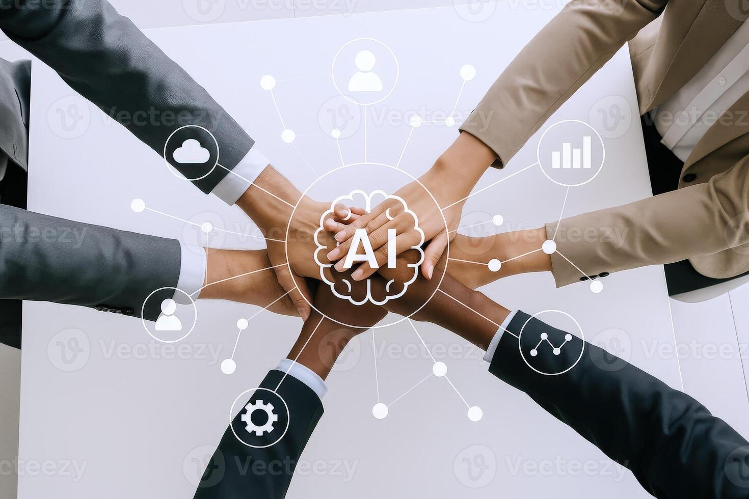Diverse Team United by Artificial Intelligence Collaboration, Innovation, and Technology-Driven Success, showcasing Unity and Forward Thinking Pro Photo