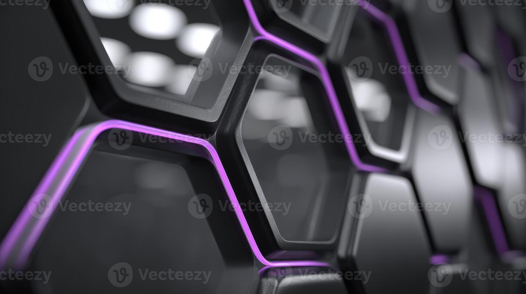 Hexagonal Grid with Purple Illumination Futuristic Technology Background, Modern Design for Tech, Science, and Innovation Pro Photo