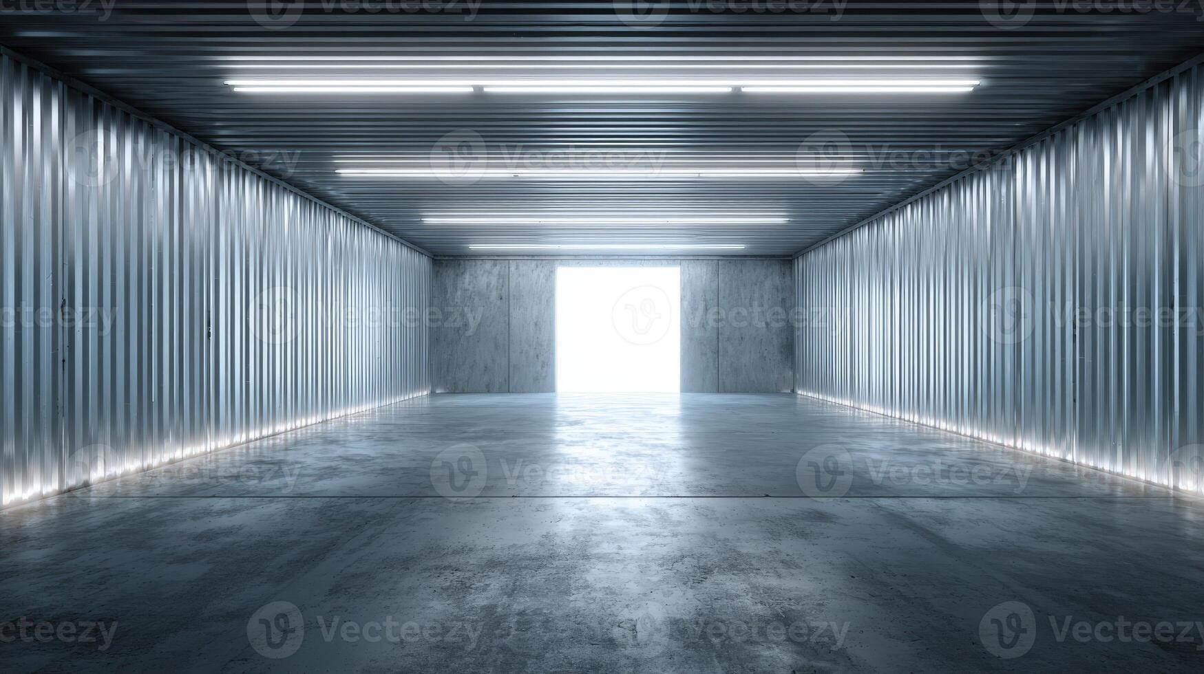 Abstract Concrete Tunnel with Illuminated Exit, Modern Architecture and Industrial Design, Futuristic Interior Pro Photo