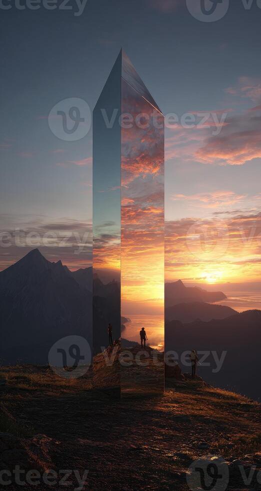 A man standing in front of a mirror with a mountain in the background Pro Photo