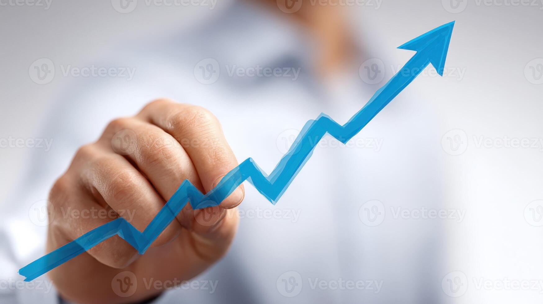Growth Chart Conceptual Visualization with Hand Touching an Upward Arrow Symbolizing Success and Progression Pro Photo