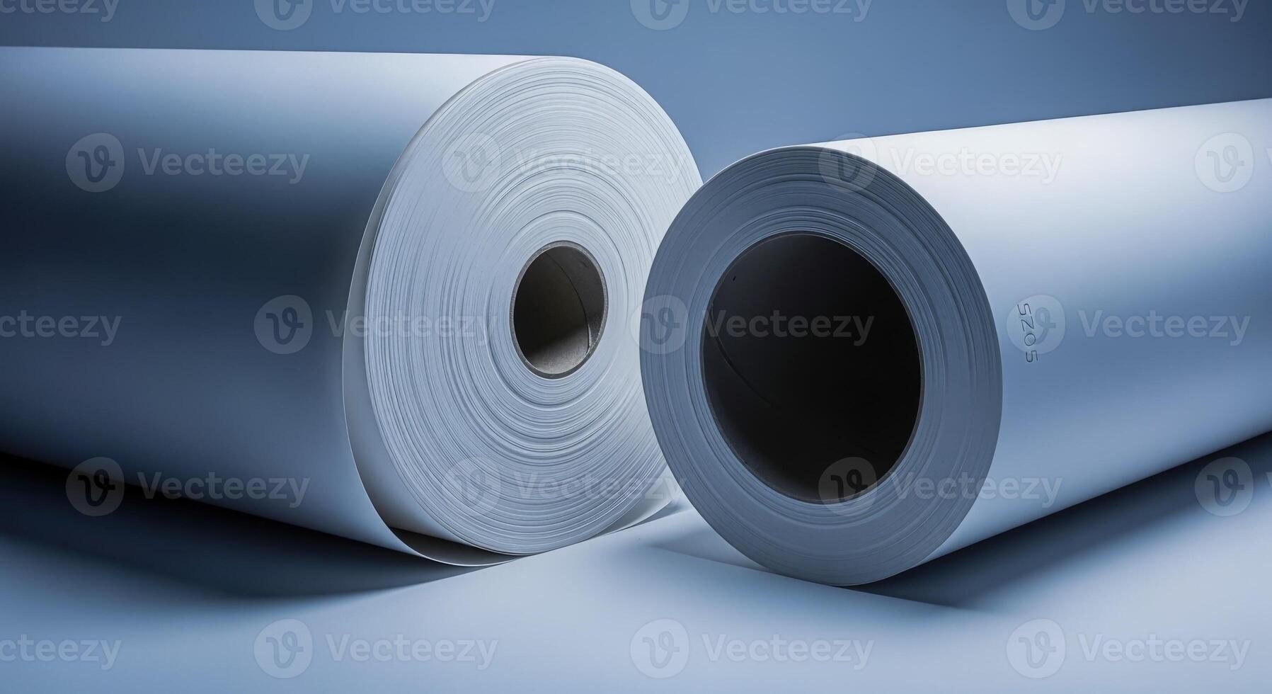 Two rolls of white paper or plotter paper, isolated on a white background in a studio Pro Photo