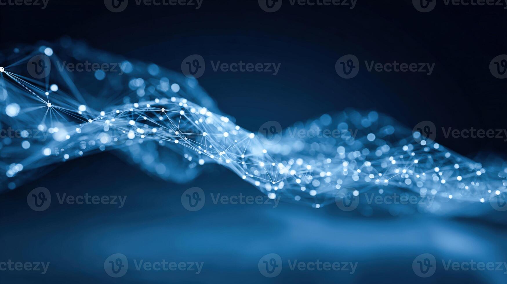 Abstract Network Connection Structure Interconnected Points and Lines Forming a Complex, Dynamic Wave on Dark Background Pro Photo