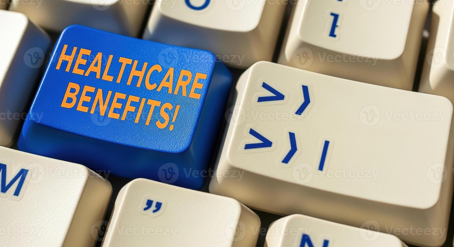 Healthcare Benefits Computer Keyboard Key Online Access to Medical Coverage and Employee Benefits Pro Photo