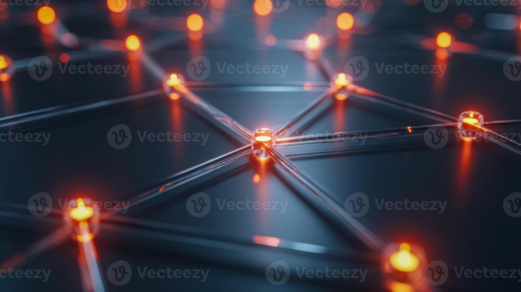 Futuristic Network Connection with Glowing Nodes, Illustrating Technology and Connectivity Concept in Dark Environment Pro Photo