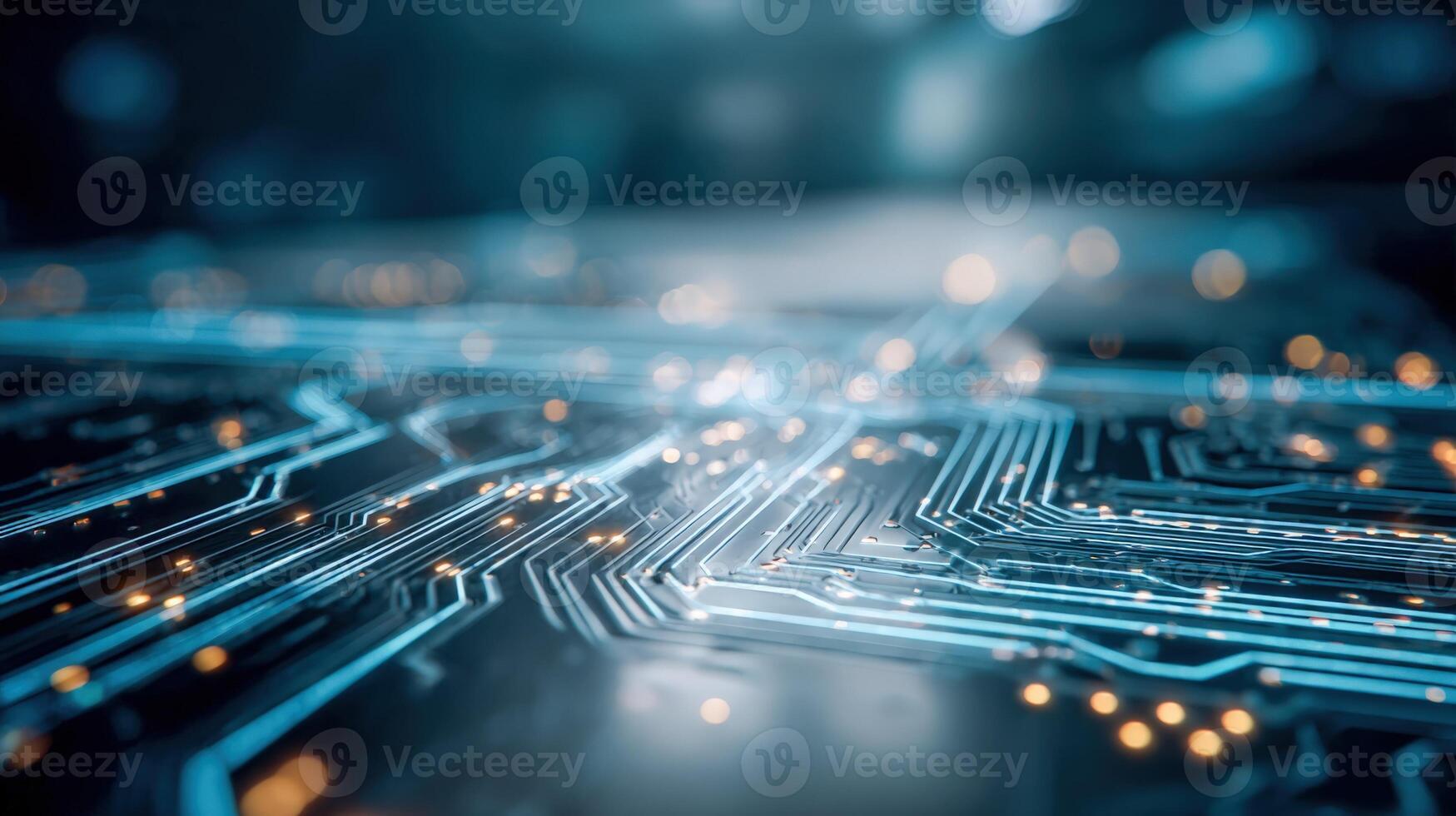 Abstract Technology Background with Circuit Board Pattern Futuristic, High-Tech Network Design for Innovation Pro Photo