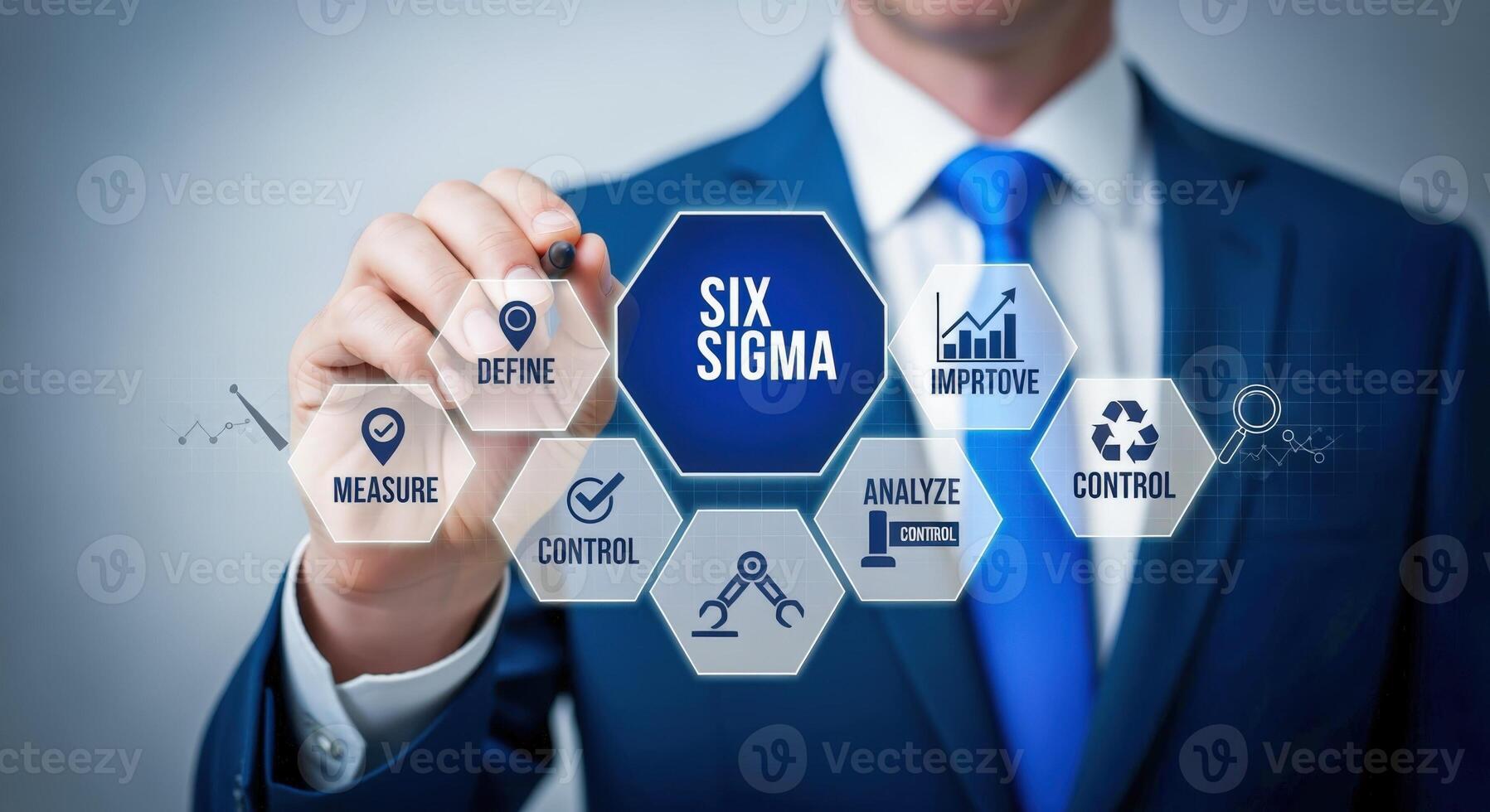 Six Sigma Methodology Presentation Business Professional Explaining Process Improvement, Quality Control and Efficiency Strategies in Manufacturing Pro Photo
