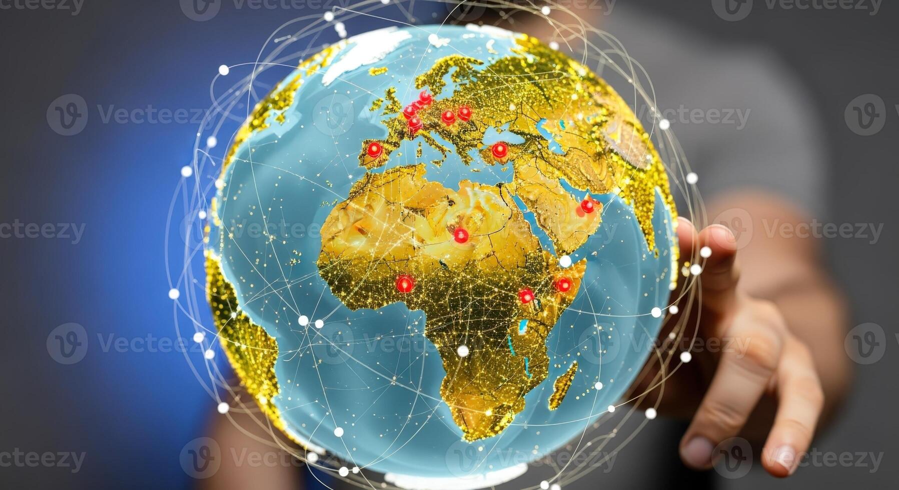Global Network Visualization Digital Earth Concept with Connection Nodes and a Hand Reaching for the World Pro Photo