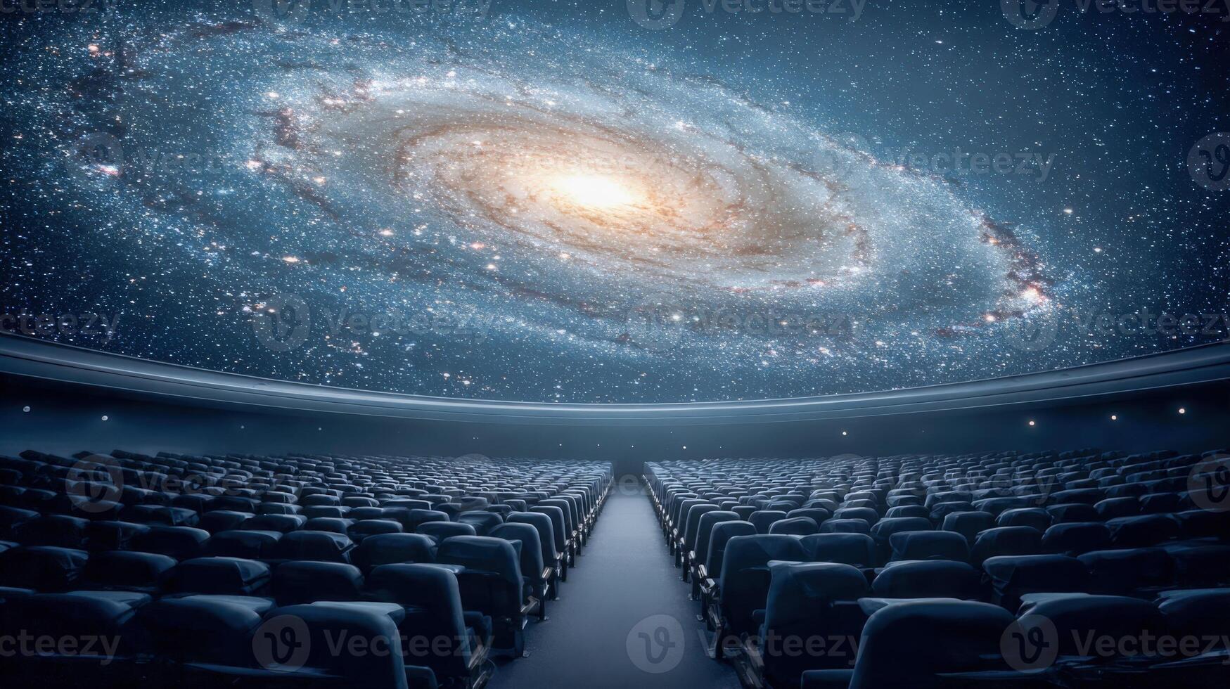 Planetarium Projecting a Galaxy onto Dome Ceiling Displaying Rows of Seats Below for an Audience to Observe Pro Photo