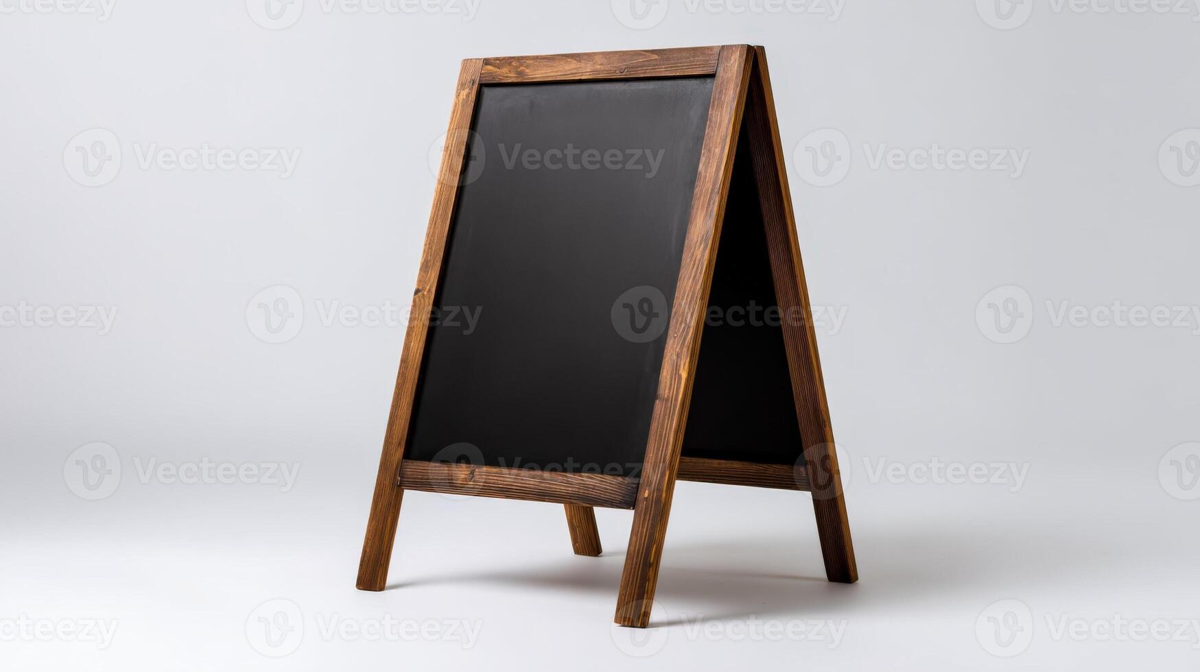 Blank Chalkboard A-Frame Sign with Rustic Wooden Border Against White Background for Custom Messaging Pro Photo