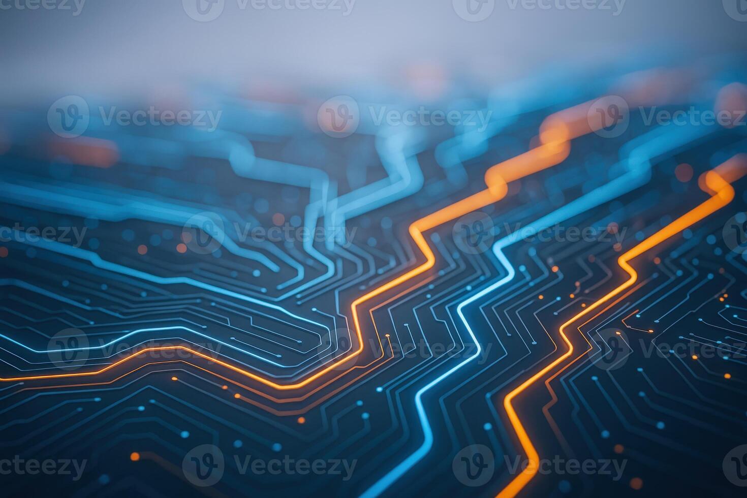 Abstract Circuit Board Design with Glowing Traces for Modern Technology and Innovation Concepts Pro Photo