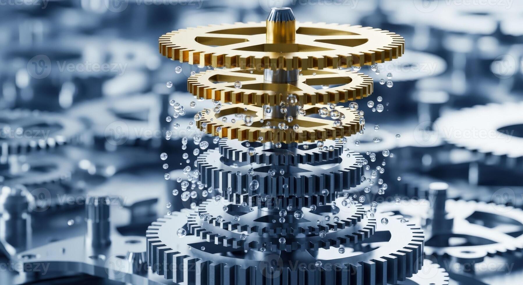 Complex Mechanical System with Gears and Cogs in Motion, Precision Engineering, and Interlocking Parts Pro Photo