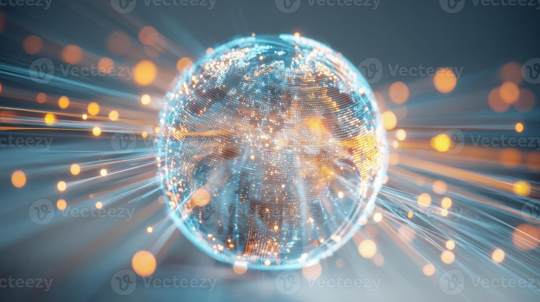 Abstract Digital Globe with Light Rays Emanating, Illustrating Global Technology, Connectivity, and Futuristic Innovation Pro Photo
