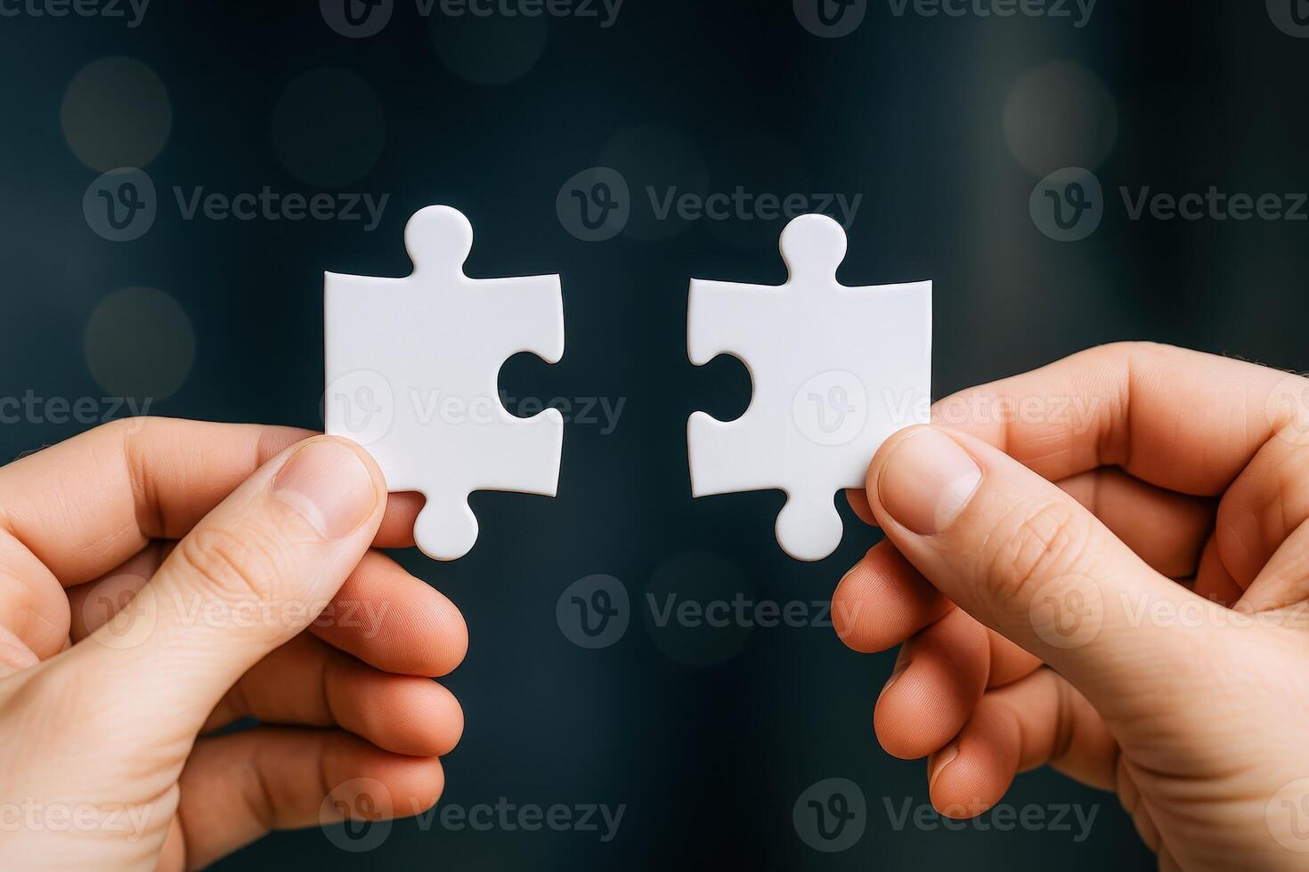 Connecting Pieces Hands Holding Jigsaw Puzzle Elements Ready to Merge for Solution and Strategy Pro Photo