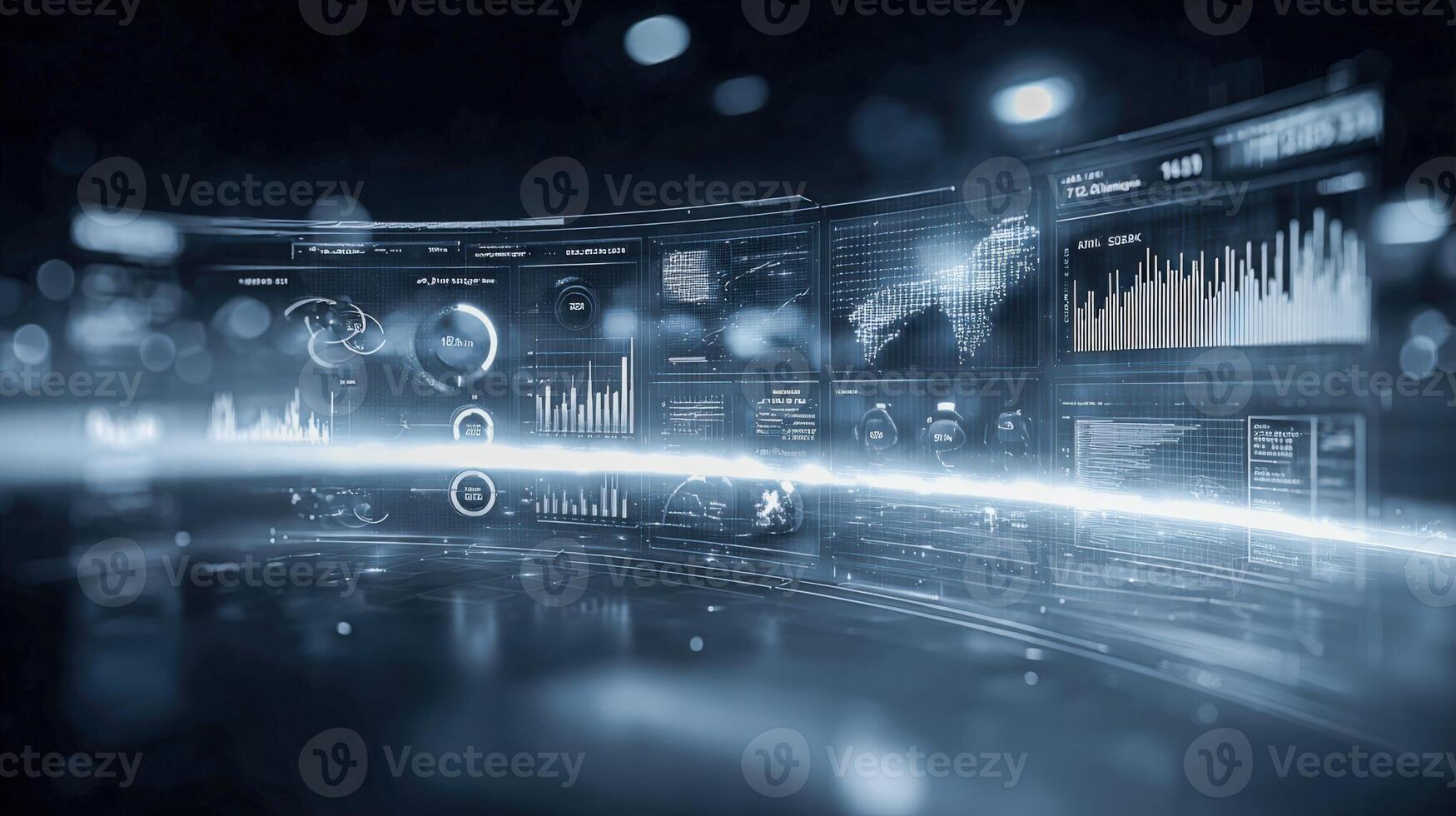 Futuristic Technology Interface Displaying Data Analytics and Statistics in a Modern High-Tech Environment Pro Photo