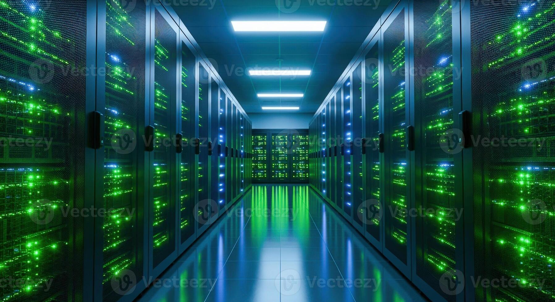 Data Center Server Room with Rows of Rack Servers for IT, Networking and Cloud Computing Pro Photo