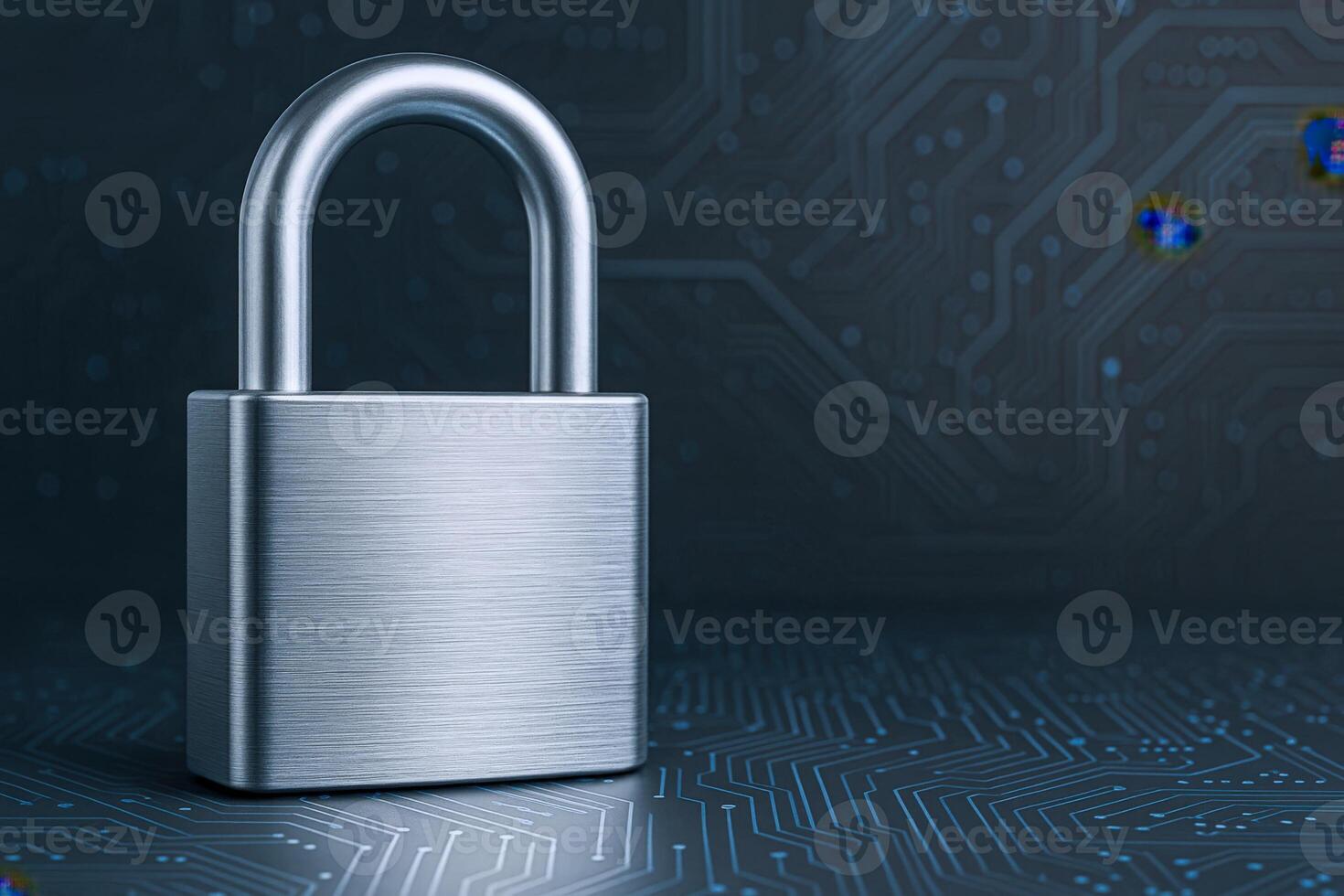 Metallic Padlock on Circuit Board Illustrating Security, Encryption, and Data Protection Concepts Pro Photo