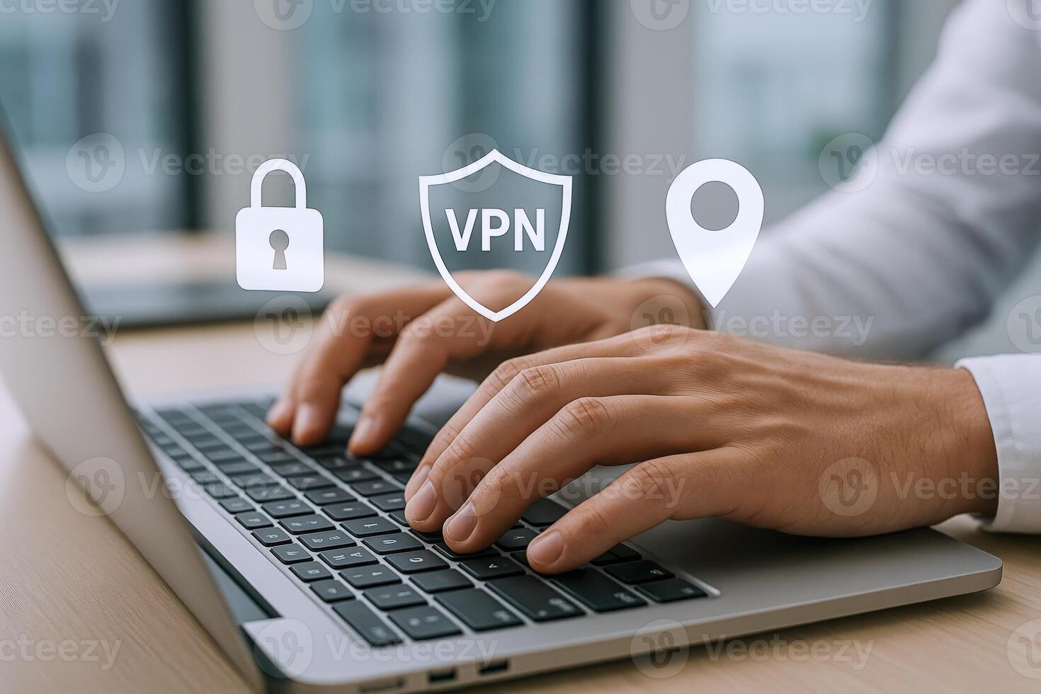 Secure Online Access with VPN Hands Typing on Laptop for Privacy and Data Protection Pro Photo