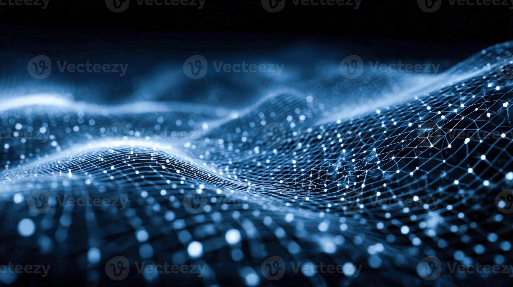 Abstract Data Network Visualization with Connected Dots and Lines in Blue Tones for Technology Background Pro Photo
