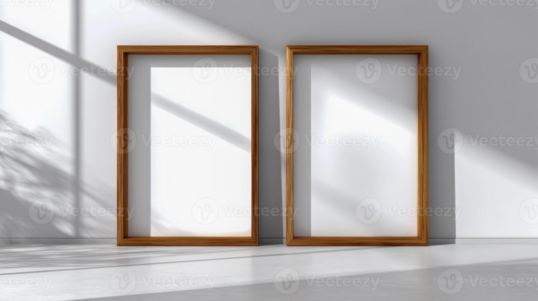 Two Wooden Frame Mockups Standing on Floor with Sunlight and Shadow Overlay for Display Pro Photo